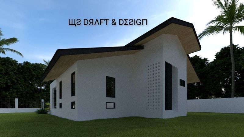 This modern home design also features a welcoming carport sitting comfortably on the immediate right of the porch. It looks prominent with a well-designed wall and concrete flat roof. The space can be more functional by utilizing it for relaxation and family functions.