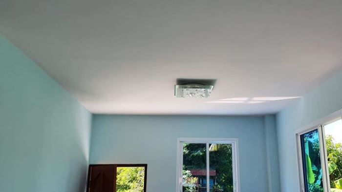 The delightful accent of the exterior extends to the concepts introduced in the interiors. The walls look very pleasant in light blue while the ceiling appear lovely in off-white paint. The color combination offers a very calm atmosphere.