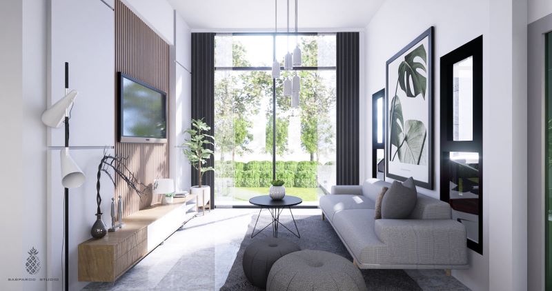 The elegance of the external façade extends to the beauty and grace of the interior, The great living space absolutely beams in a blend of white, grey, and brown tones from floor to ceilings. The set of modern furniture offers a pleasant backdrop in this living room. The ceiling lightings bring more brightness to the space which is conducive for relaxation.