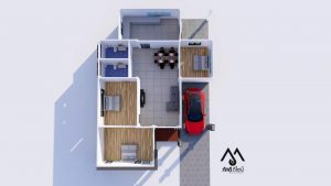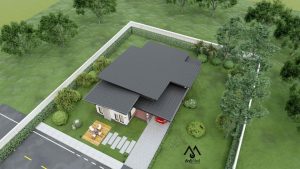 From a spacious frontage, you will pass the terrace to access the living room through glass doors. The living spaces settle at the middle of the plan with bedrooms on the opposite side. The master’s bedroom with a private ensuite sits on the middle left, while the secondary bedrooms are in front and beside the dining room.