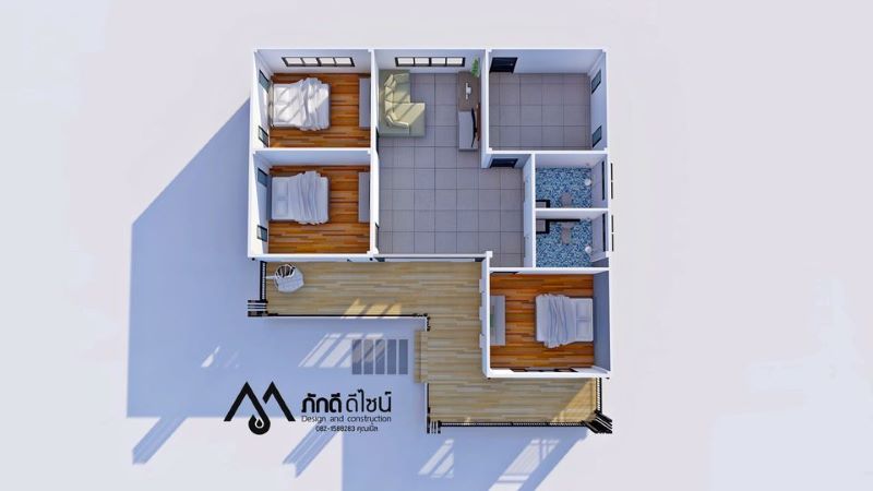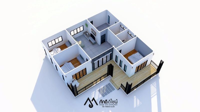 Meanwhile, the three bedrooms occupy the three dedicated corners. You will notice the master suite with a huge walk-in-robe on the front right corner. On the other hand, the secondary bedrooms are on the opposite corners on the left portion. All bedrooms have the access to view the outdoor living space as they are provided by sufficient windows.