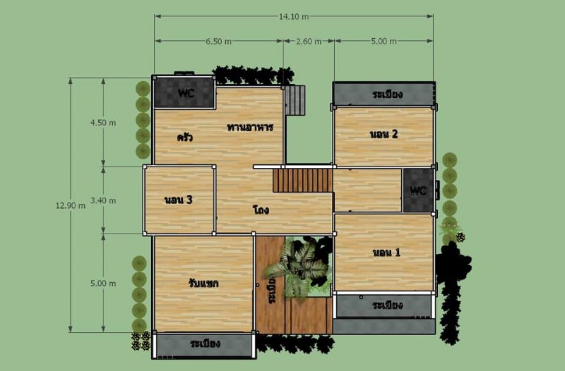 This split-level design boasts coziness with comfortable outer and inner spaces. It stands in a lot that measures 14.1 x 12.9 meters which gives a usable space of 182.0 sq. meters. The layout spreads to a terrace, three balconies, living room, family room, dining area, kitchen, three bedrooms, and two bathrooms.