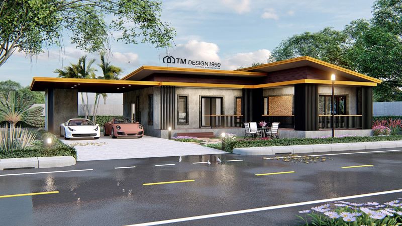 Additionally, the bedrooms enjoy private balconies accessible from glass doors that are perfect for relaxation and quiet moments at night. These extra spaces look gorgeous with steel guardrails and canopy roofs in white color. Meanwhile, the space directly below the private zone is where the two-car garage is sitting comfortably.