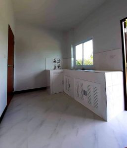 Elsewhere, the modern kitchen also bear uniform appearance as the other spaces with grey tone.