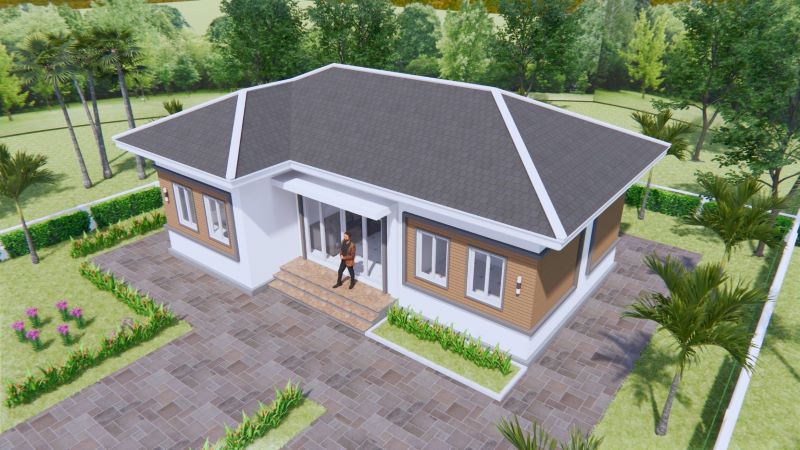 The lovely styling is visible from the tidy and polished assembly of the high-pitched gable roof with grey-colored tiles complemented by white ceilings. It is a smart concept to have high ceilings as it offers an immediate sense of light and space. Consequently, the concept increases the internal comfort level. Meanwhile, the exposed exterior walls look spotless in a white plaster finish that exudes class and elegance.