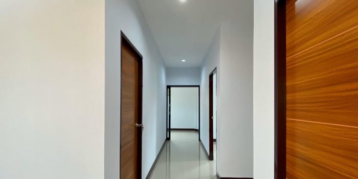 The residential house in feature is proudly standing in a 100.0 m² floor area. In fact, the unit boasts three generous bedrooms which is best suited for a family of 4-5 members. The residence opens with a porch leading to the living room through the sliding glass door. The design is a free flowing concept among the living spaces which offers greater mobility and accessibility. The use of big sized glass is a smart concept for the penetration of plenty of natural air and light that ventilates the interior of the house.
