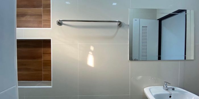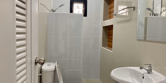 Elsewhere, the bathroom behaves as stylish as the other sections of the house. It is furnished with genuine fixtures and accessories while bearing the same shade as the other rooms of the structure.