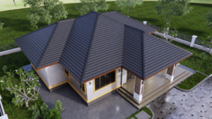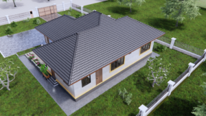 - well-designed cross-hip roof with grey tiles and white ceilings