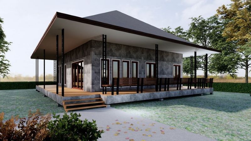 This resort style house focuses on simplicity and comfort as it is a vacation house. It features a wraparound verandah which is a functional space for relaxation. Since it is open and exposed to an airy atmosphere, then, you can feel comfort and freedom.