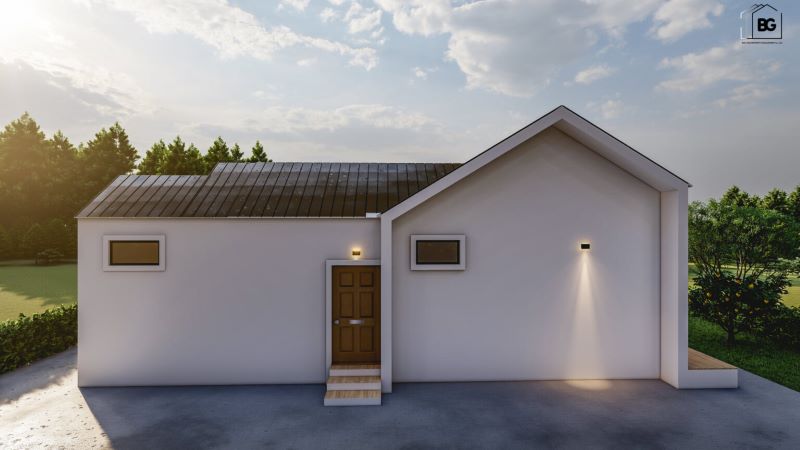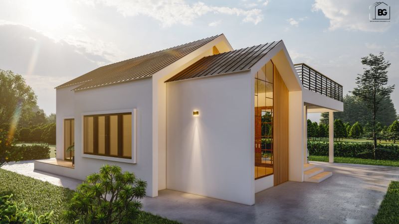 As common to Nordic designs, the house looks unique and stylish with a graceful gable roof assembly without the eaves, and with brown-colored metal sheets.