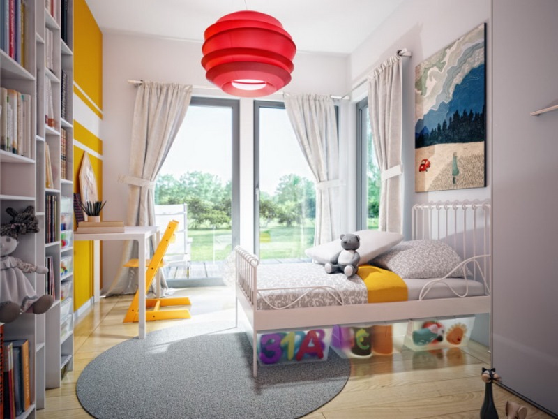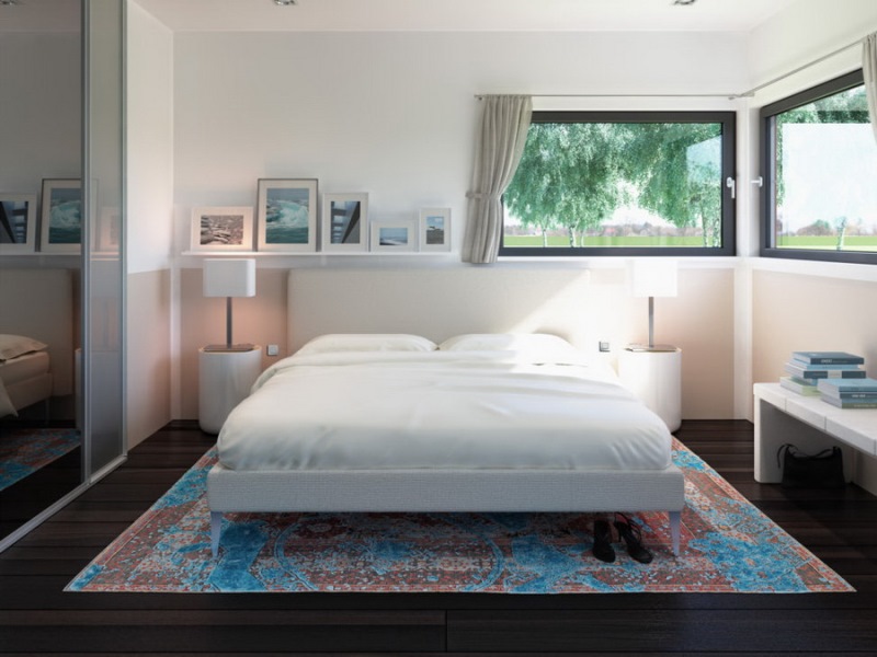 Entering the house, you will notice a modern well designed dining room that enjoys a free-flowing concept with the living room and kitchen. This obviously saves space and promotes better mobility and accessibility. Meanwhile, the private zone of two bedrooms sits on the right side of the plan. The lone bathroom is sitting in the right corner at the back. As can be seen, the floor plan bears a smart concept and at the same time is very functional.