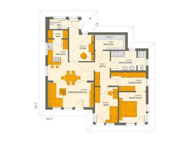 A modern bungalow house of 78.0 sq. meters living space, it offers a superb floor plan that includes an open verandah, living room, dining area, kitchen, two bedrooms, and one bathroom.