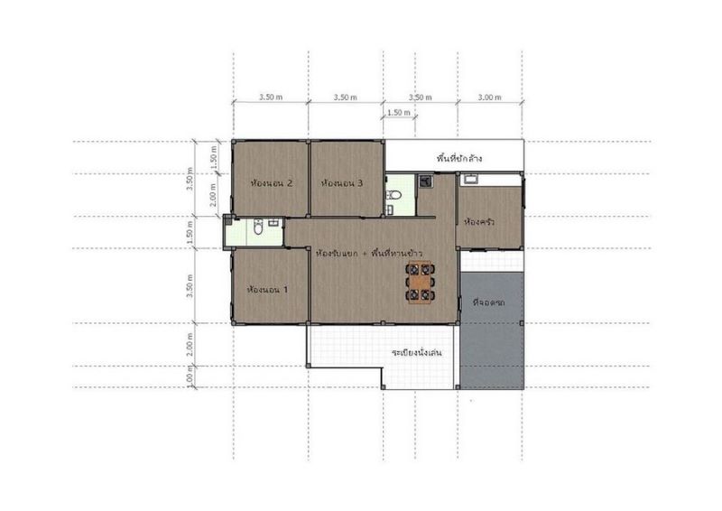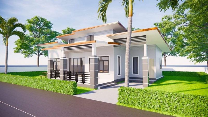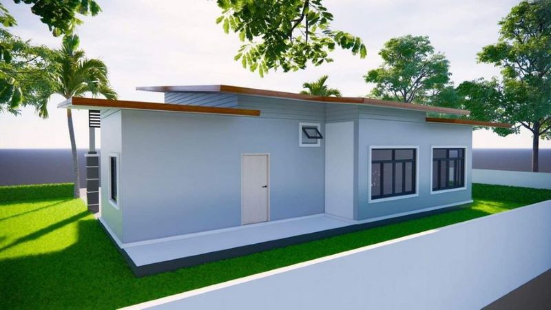 You can access the great living room from the terrace through glass doors. Beyond sits a spacious great room that flows seamlessly into the formal dining area and then ends in the kitchen. The living spaces occupy the front middle section of the design. On the other hand, the private zone settles at the left and back sections of the layout. The three bedrooms form a triangular arrangement with the auxiliary bedrooms on the entire left and the master’s bedroom at the back. Meanwhile, the inviting carport sits comfortably on the front right side of the house.
