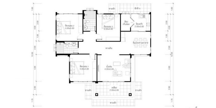 The plan showcases the rooms to be very functional. The living spaces settle at the right portion while the private zone of three bedrooms occupy the left section of the design. The elevated porch stands great with comfort as it introduces the interior of the house through a sliding glass door.