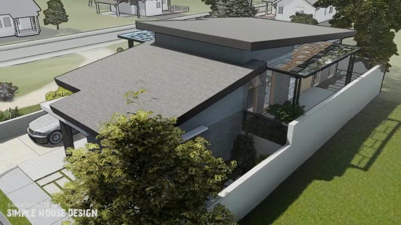 Undeniably, one of the impressive elements of this house is the pair of shed roofs with grey tiles and brown ceilings. Additionally, the pair of polycarbonate roofs on the left and right sides are unique and stylish. The entire assembly along with its refined workmanship is visually appealing and increases the appeal of the house.