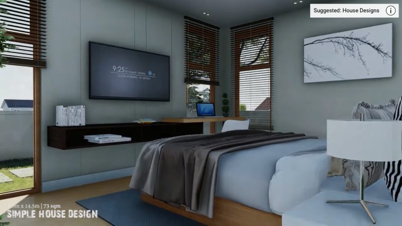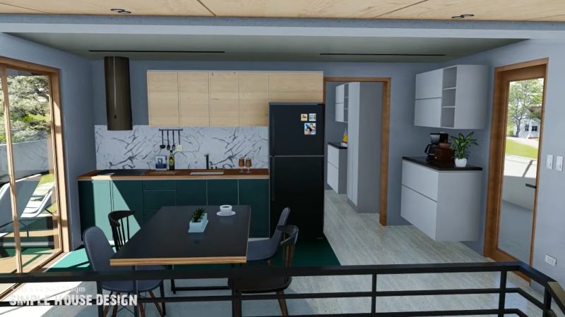 This design is perfectly in tune with a modern family with cleverly crafted spaces and effortless flow. A compact design, you can access the inner spaces through a glass door. Once inside, you will notice an eye-catching layout with the airy living room is a recessed concept. As you go up the stairs, the dining room and kitchen will welcome you. Move your eyes around and you will observe the beautiful lanai on the left side.