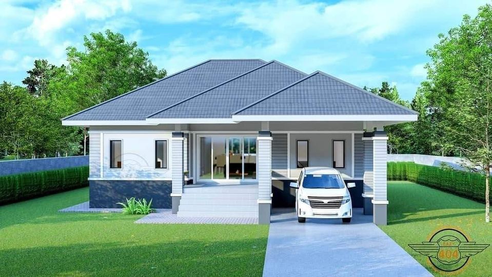 With a cleverly designed interior layout, life is easy in this house. Thanks to the well-zoned spaces that maximize space, privacy, and enjoyment. This floor plan has a size of 10.0 x 13.0 meters with a usable building space of 143.0 sq. meters. The layout spreads to a verandah, balcony, living room, dining area, kitchen, three bedrooms, two bathrooms, and a carport.