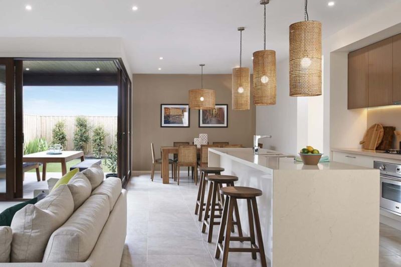 The island kitchen is as magnificent as the living room that wears a similar concept considering the furniture, colors, and workmanship.