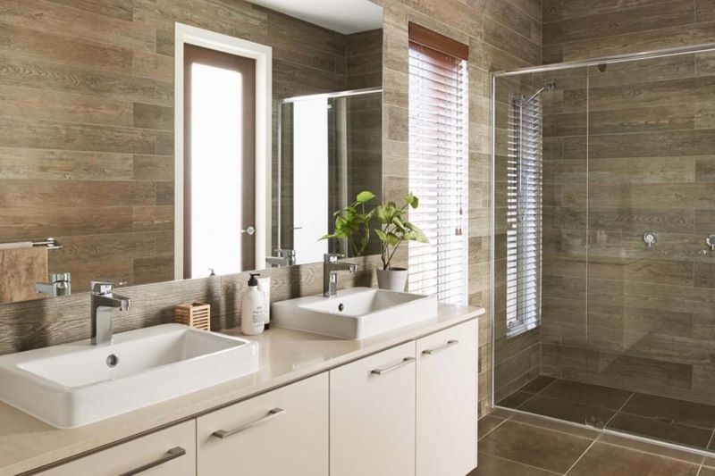 The modern and luxury bathroom design does well with classic and genuine accessories that show class and style. The floor and wall tiles in brown shade bring a unique touch and feel.