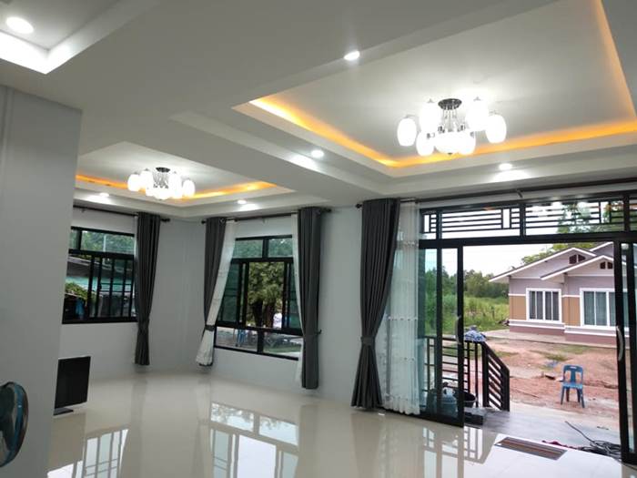 The interior of this three-bedroom modern home plan is an open layout concept giving more space, greater mobility and accessibility. As the purpose of the design, this is to promote green environment. The upper section looks great with coffered ceilings accentuated with perimeter lights and chandelier. The blend of color application in the interior is a concept of pleasantness. As can be seen, the uniformity of concept and design is employed in all sections, from the living room to the bedrooms.