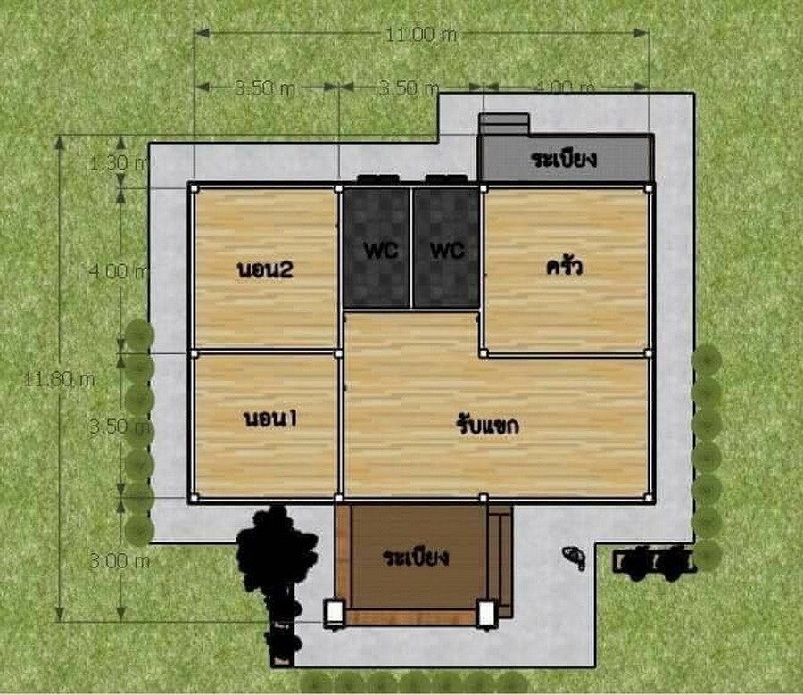 The house in feature today is a two bedroom single level house standing in the middle of a garden lawn with a usable living space of 100 sq. meters. Obviously, with a surrounding like this, living will be very healthy. In fact, the setting offers ample supply of light and air which are very important factors for a healthy living. Apart from that, this house supports green living.