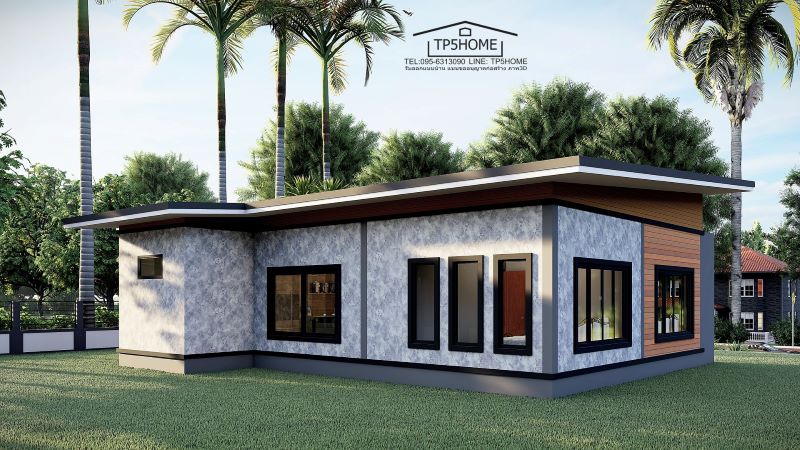 This house features a straightforward but functional layout features a terrace that makes your way to access the living spaces. The living spaces occupy the right wing, while the bedrooms sit on the left side. From the great living room, you will notice the dining room and kitchen on its right, which promotes better mobility between spaces. Meanwhile, the master suite sits in the front corner, while the secondary bedroom occupies the opposite corner.