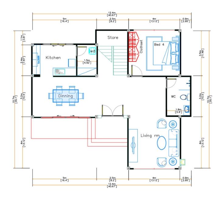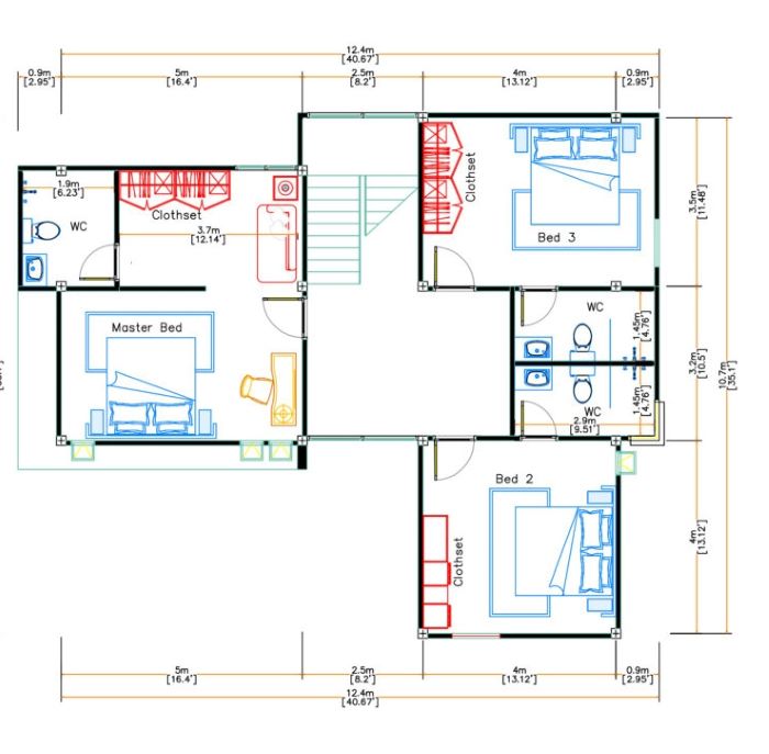 This splendid design features a floor plan with efficient use of space. Likewise, with an open layout, the accessibility among spaces and privacy as well is at a high level. This design utilizes a lot that measures 12.4 x 10.7 meters with a usable building space of 210.0 sq. meters for two floors.