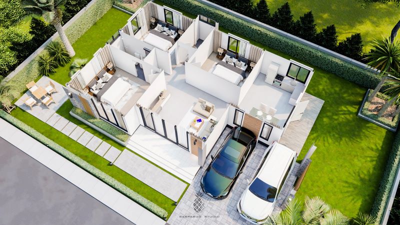 Meanwhile, with a smart design and careful proportions, this design also brings the spaces look bright and pleasant with the exterior walls in plaster finish in classic white tone.