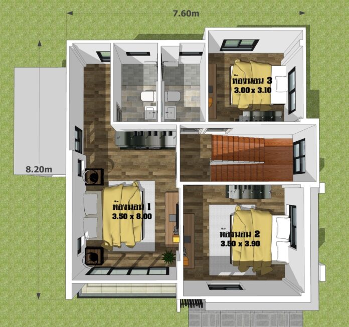 Meanwhile, the staircase on the right of the living room will lift you to the upper level that hosts the private zone of three bedrooms, two bathrooms, and a balcony. The master suite with a private ensuite, huge walk-in-robe, and complete amenities occupy the entire left section. On the other hand, the secondary bedrooms settle comfortably on opposite corners on the right side. The balcony which is accessible from the master suite is a perfect place to relax and see the outdoor space and nearby surroundings.