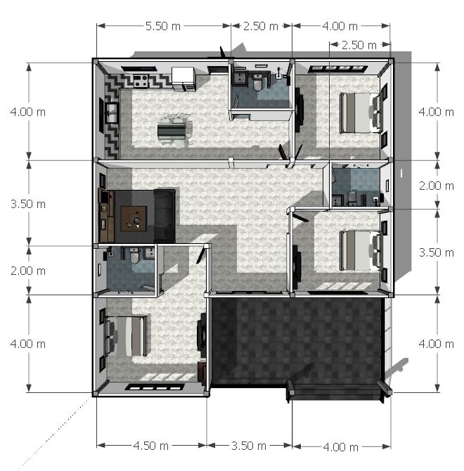 Features of Modern 3-Bedroom Home Plan