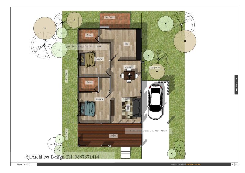 This country-style home utilizes a lot that measures 8.0 x 15.0 meters with a living space of 120.0 sq. meters. The usable area spreads to a verandah, living room, dining room, kitchen, two bedrooms, two bathrooms.