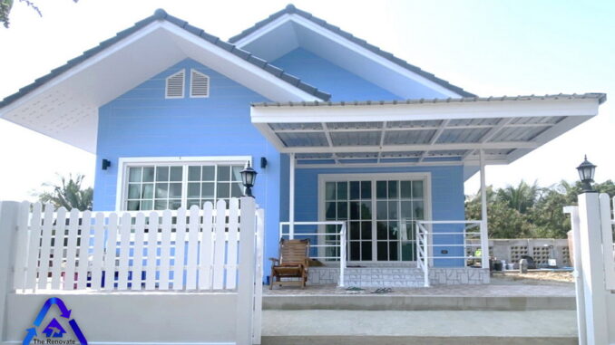 What is impressive with this modern design is the graceful high-pitched gable roof assembly with grey-colored tiles. The assembly along with the spotless blue exterior walls exude class and class.