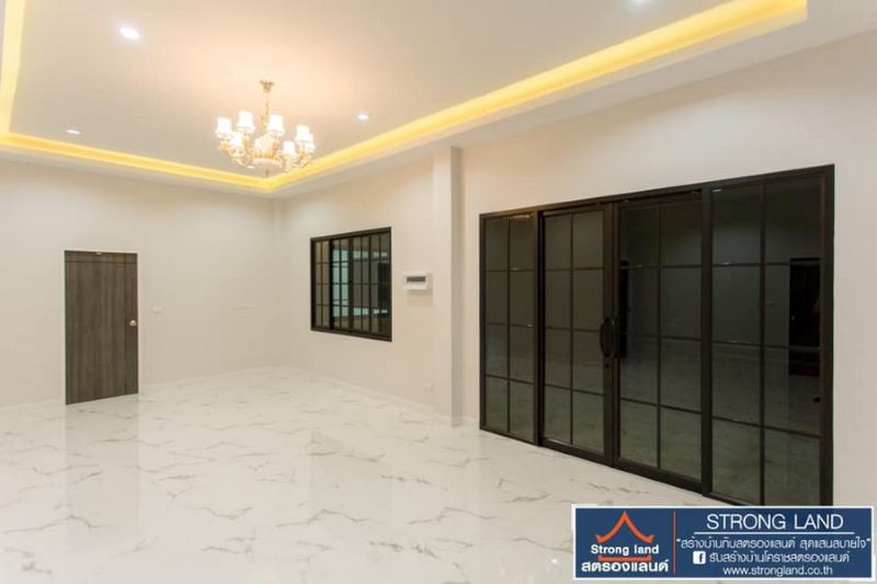 Meanwhile, the elegance of the great room extends to other parts of the house. In fact, they also burst with brown marble tiles matched by white interior walls.