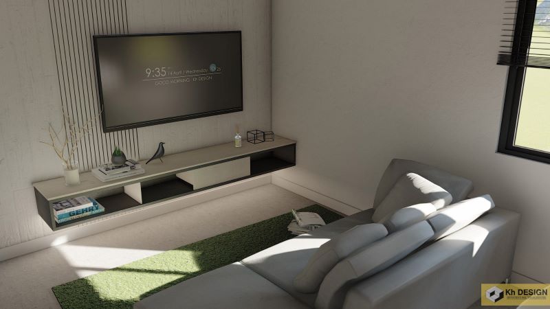 This modern design features and elevated terrace in the ground floor and a balcony in the second level, both spaces of which are great extension of the inner spaces for relaxation and family functions. The terrace looks gorgeous with grey marble tiles and wooden battens that heighten the beauty of the house. Similarly, the balcony is equipped by a sofa which is functional for various activities. Furthermore, the stunning exterior combines wood and stone with sufficient windows for volumes of curb appeal. The airy surroundings and glass elements shower tons of natural light and air that places the inner spaces at pleasant level.