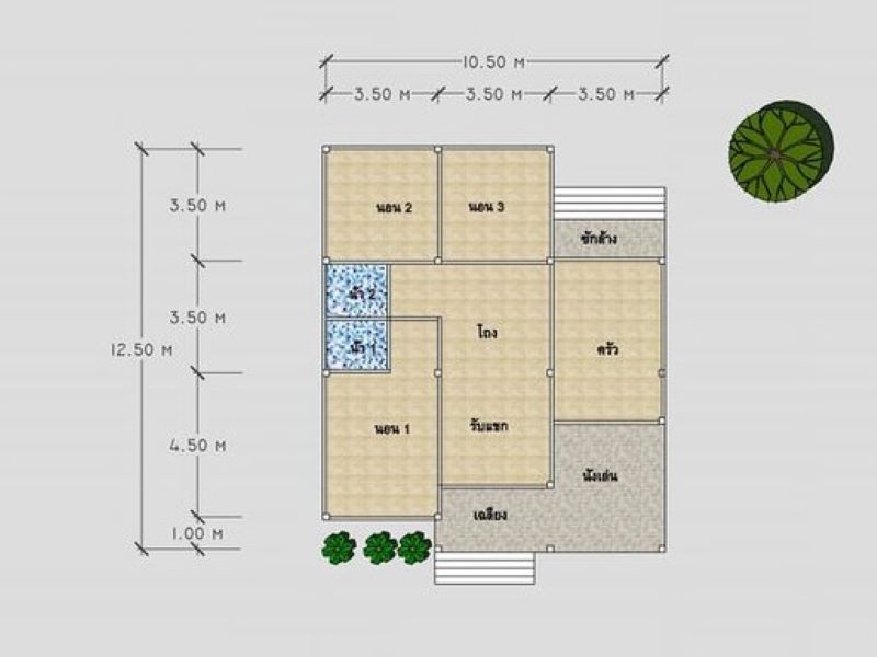 This stunning modern home has 130.0 sq. meters of living space from a lot that measures 10.5 x 12.5 meters. The usable space spreads to a lanai, living room, dining room, three bedrooms, and two bathrooms.