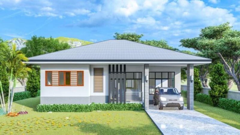 This modern house design utilizes a building space of 120.0 sq. meters. The interior looks more spacious with an open concept as unnecessary walls are avoided between spaces. The floor area spreads to a terrace, living room, dining area, kitchen, two bedrooms, two bathrooms, and a carport.
