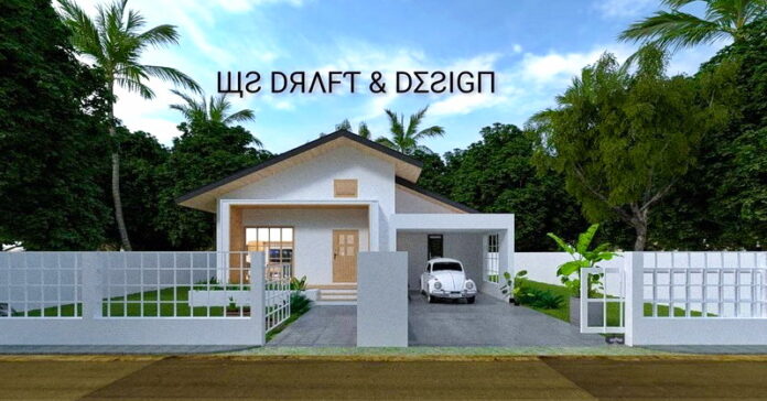 This bungalow house opens up with an elevated porch with brown tiles which serves as an entrance to the living spaces. The exterior façade has a simple design in its geometrical shape; however, it looks very graceful in a tidy white paint. The attached garage on the immediate right of the main entrance looks prominent in its own right.