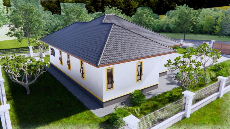 Everyone will agree to say that the cross hip roof assembly with grey tiles and white ceilings is perfectly assembled. Likewise, the exposed exterior walls are impressive with the spotless surfaces that gleam in a classy white tone. As a result, the conglomeration of exterior concepts along with tidy workmanship exudes sophistication.