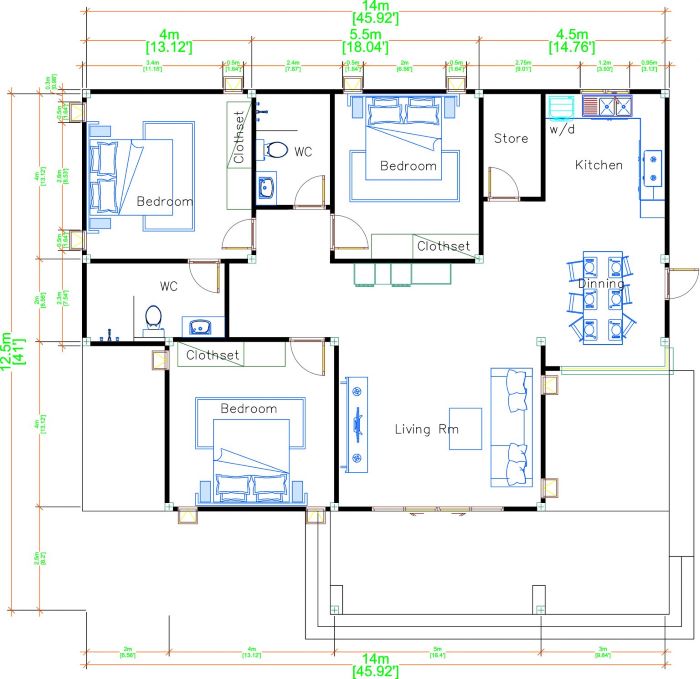 This contemporary home will impress families and homebuyers. It features a smart interior layout that stands in a lot with a usable building space of 175.0 sq. meters from a lot that measures 14.0 x 12.5 meters. The total cooled and heated living space hosts a verandah, living room, dining area, kitchen, three bedrooms, two bathrooms, and storage room.