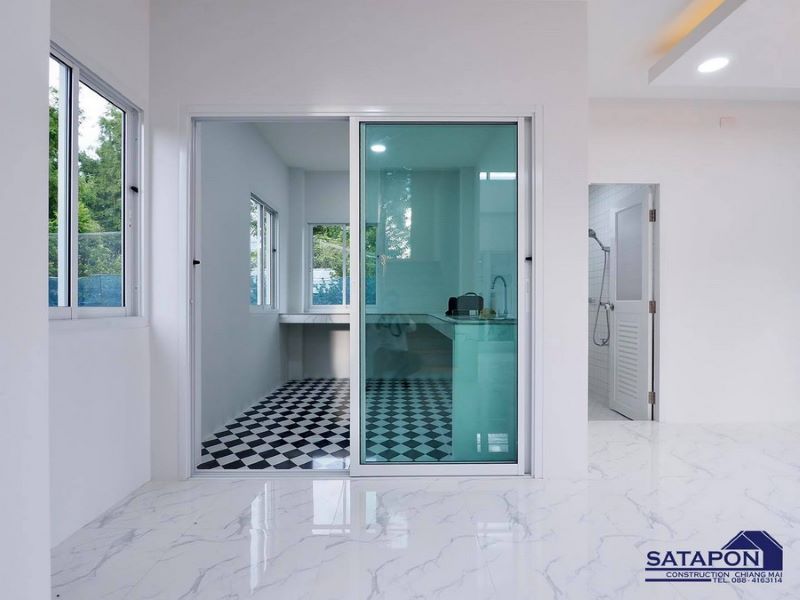 This stunning home has a remarkably graceful exterior of exposed wall cladding with natural stones in grey color. Additionally, the wooden blinds in the balcony of the second level deliver an extra character and appeal. Perhaps, the most excellent feature to appreciate are the large green-tinted glass doors and windows on both levels and the balcony on the second floor. As a result, the glasses don’t only allow the family to enjoy watching the outside panoramic view, but also make the interior feel cozier and at a pleasant level.