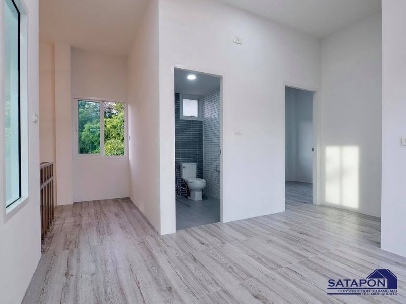 This contemporary style two storey house with a usable space of 125.0 sq. meters consists of a living room, hallway, dining room, kitchen, three bedrooms, and three bathrooms.