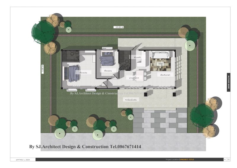 You’re lucky to discover a house of comfort in a functional layout with a 15.0 x 5.0 meters narrow lot. The usable building space of 75.0 sq. meters excluding the verandah hosts a living room dining room, kitchen, two bedrooms, and two bathrooms.