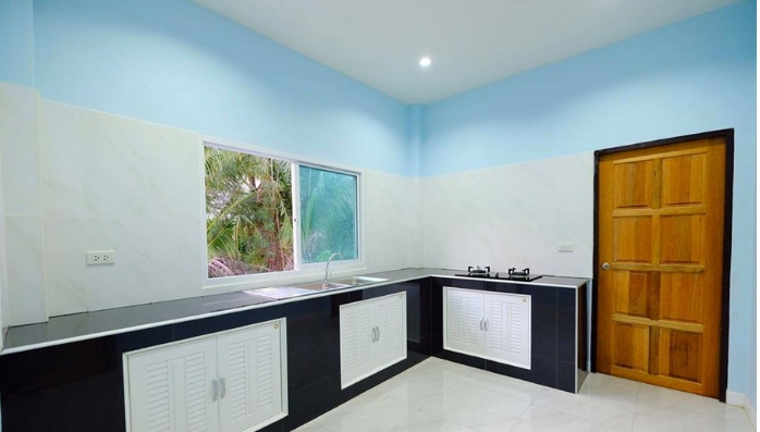 - Modern L-shaped kitchen with snack bar for easy meal services
