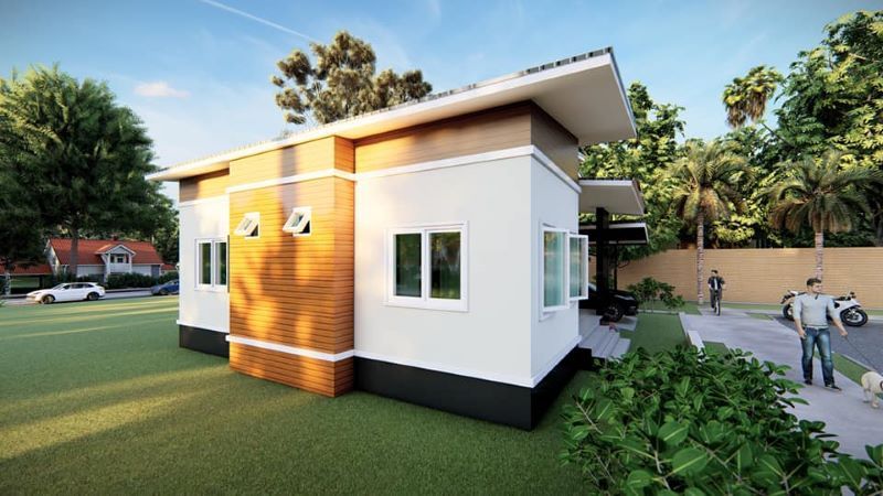 What is incredibly impressive with this house is the equally elegant flat and shed roof assemblies full of creativity. The assembly with roof tiles, white ceilings, and brown wooden gable showcases style and uniqueness. Meanwhile, the exterior walls with plaster finish in a classy white paint is not to be underestimated with their spotless and refined workmanship.