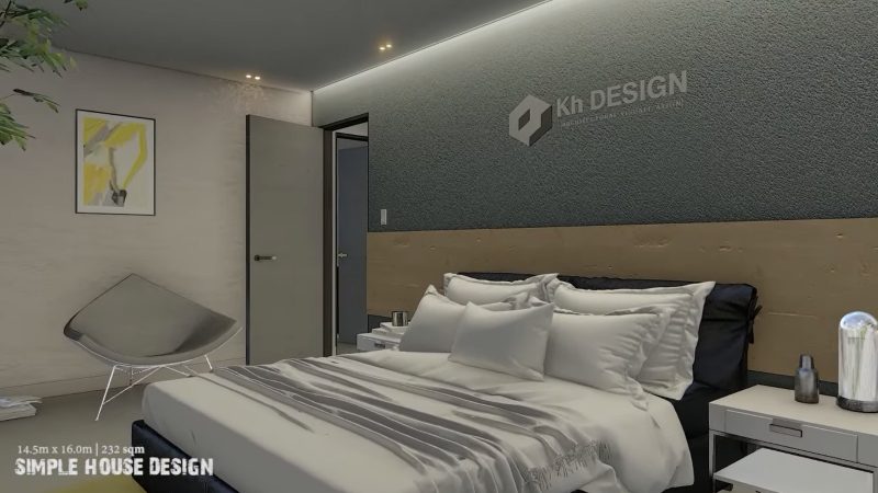 Modern homes don’t have to be in the city. Standing in a stunning cozy setting, and weeping willow trees create softness, and pleasantness in a blend of white, grey, and brown hues. Moreover, this house plan gleams admirably with its dazzling exterior concepts that generate a modern touch and feel.