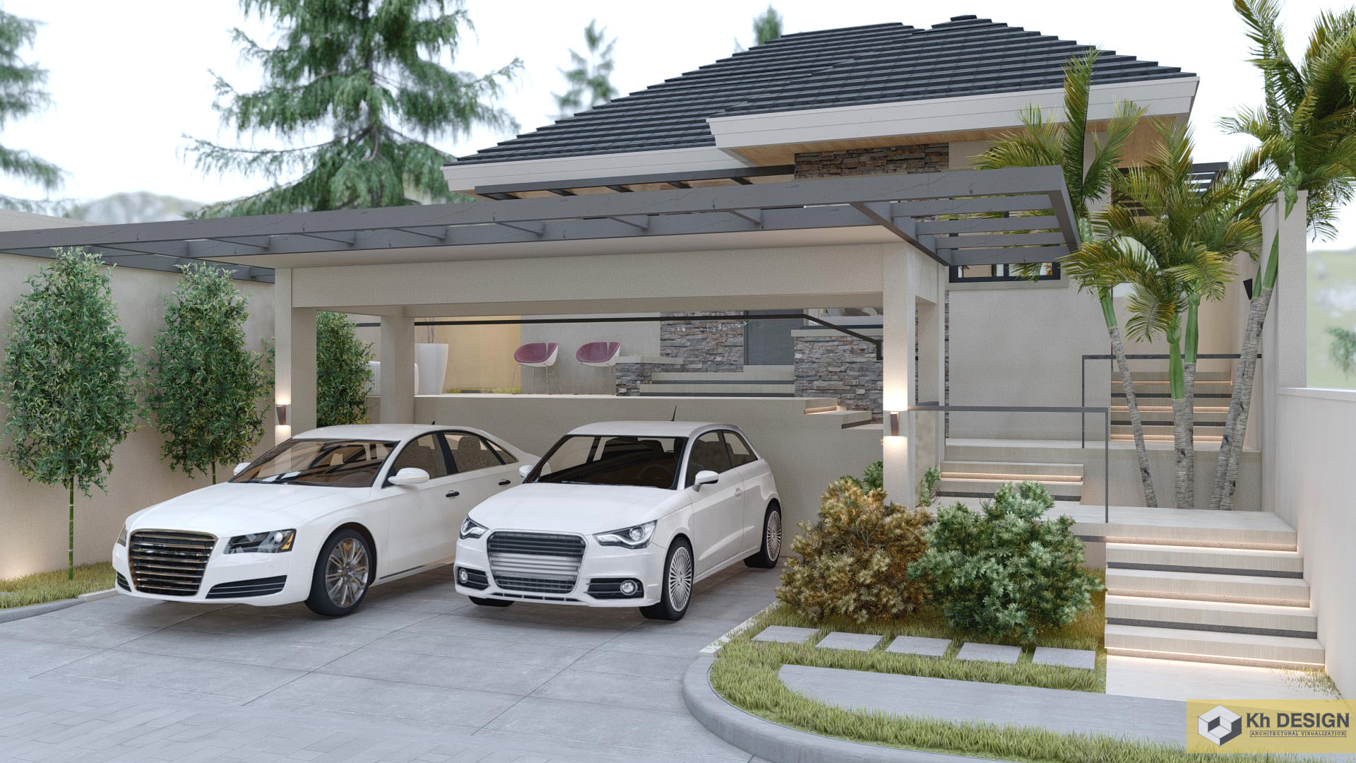 The master suite resides at the front left corner, while the secondary bedroom is adjacent to it at the back. Both bedrooms delight their occupants with individual walk-in closets. Meanwhile, the spacious carport with polycarbonate roofing sits comfortably on the left side of the house.