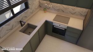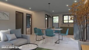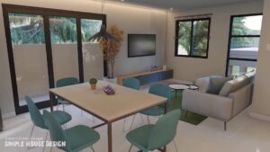 Likewise, the inner spaces focus on grace and comfort. Similarly, the space is elegantly embellished with furniture and accessories in a fusion of cream, beige, grey, and green shades that create an enchanting ambiance. You will also love the overall concept of the entire space, furniture, accessories, and decorations arranged in a refined workmanship. Let us look at this design’s exterior and interior concepts.