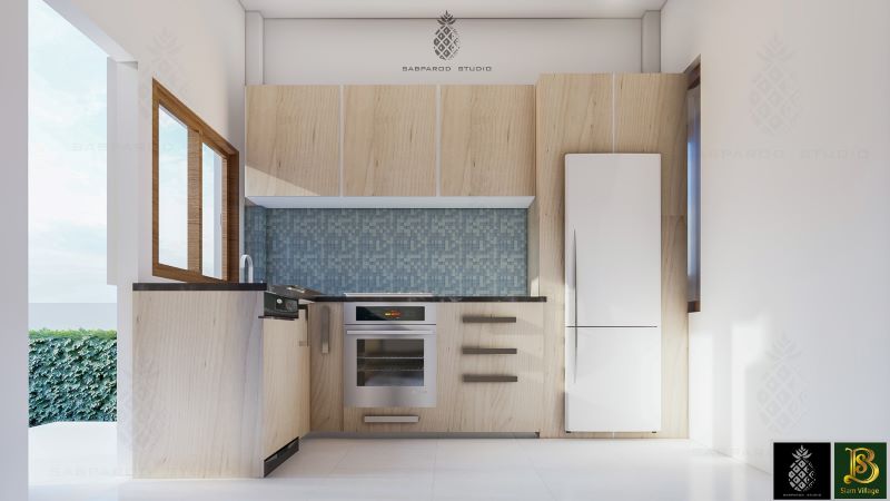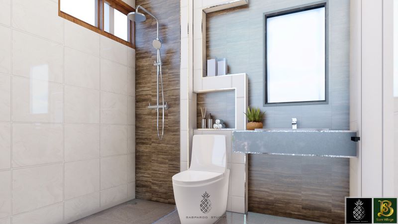 This modern home design also features a graceful and inviting carport sitting comfortably on the right corner of the plan. It stands secured with a flat roof assembled with refined workmanship. Meanwhile, the two assemblies of gable roofs look magnificent with wooden walls and ceilings. The exterior walls are spotless in white mineral plaster finish.