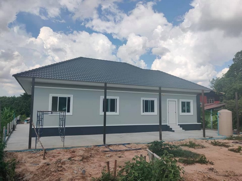 An elegant bungalow house, the exterior concepts are graceful with a mix of soft and warm hues that offers an amazing façade. One of the most significant highlights of this residence is the intricate cross hip roof assembly with grey-colored tiles. In fact, the assembly and workmanship are truly impressive with refinement.