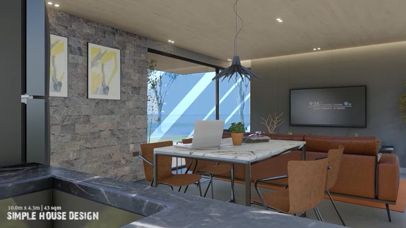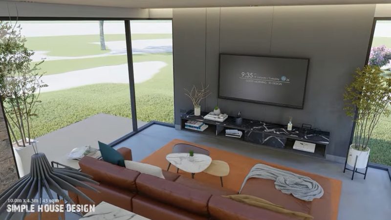 Overall, the concept provides large glass panels around the living room that certainly brings the interior to extreme comfort. With a spacious outdoor living space, the house feels even more pleasant.